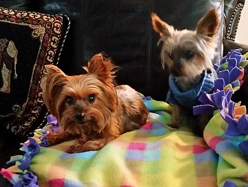 Hi Cathie, I meant to write to you sooner. The trip was great , and thanks to you and John the alternate route was much quicker than Rte. 44 and a much easier ride home and thankfully we did not hit any traffic. Lolly/Lady is doing great! Lila and her are great friends already. Lady has tried out all of Lila's dog beds (5) and Lila doesn't get upset or jealous. Lady is such a lover!!! She follows me around everywhere and my husband too, she is such a sweetie!!!! We noticed she doesn't really like the grass she will pee in the backyard once in a while immediately after she runs up on the patio. We take her for walks around the block in our neighborhood to get her to go also because it's pavement/sidewalk. Last night during the night she peed on the kitchen floor, I don't want to crate her because Lila sleeps in her dog bed so I had their beds next to each other and they have full access to the living room/ kitchen area and in the hall bath (where I put a wee wee pad in) so if Lila has to go at night she does - but Lady hasn't figured that out yet. I was hoping for her to learn from Lila. I have a couple of questions...1.)Her eye drops: I have an appointment on Wed with the vet just to get set up and established with a chart. Any way I did not see the drops in the bag so I'm not sure they were in there. So I was wondering if I should mention to the Doctor to see if she needs them - her eyes look good. 2.) The chew bar: I can't remember the name of it - I know it was beef. I know you said to make sure that it wasn't from China but I just can't seem to remember the product name. I can't believe how much we all love her already. Thank you so much for saving her! I'll be in touch! I've attached some photos from this afternoon in the backyard these are Lady & Lila on the patio couch- just relaxing :) I will take some of them playing together and send soon. Thanks again for everything, Cathy-Lu